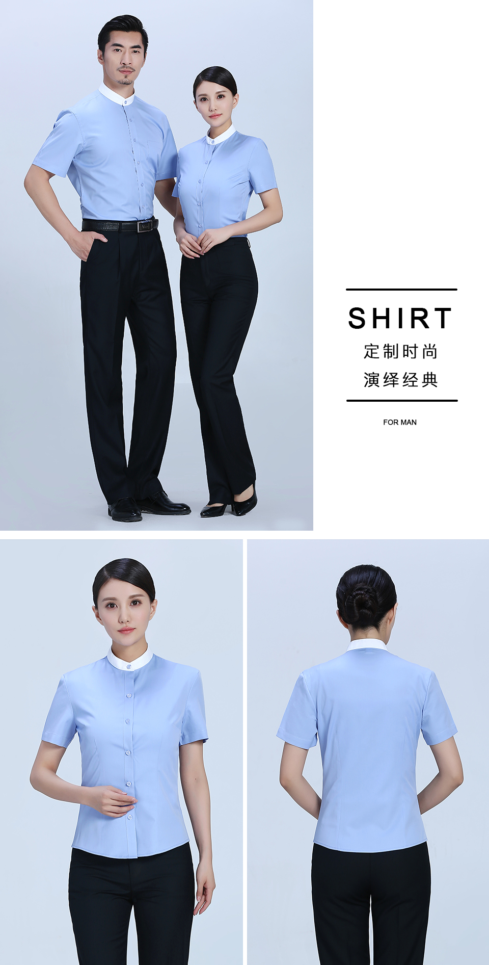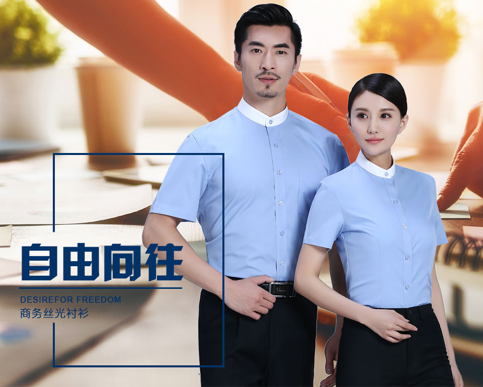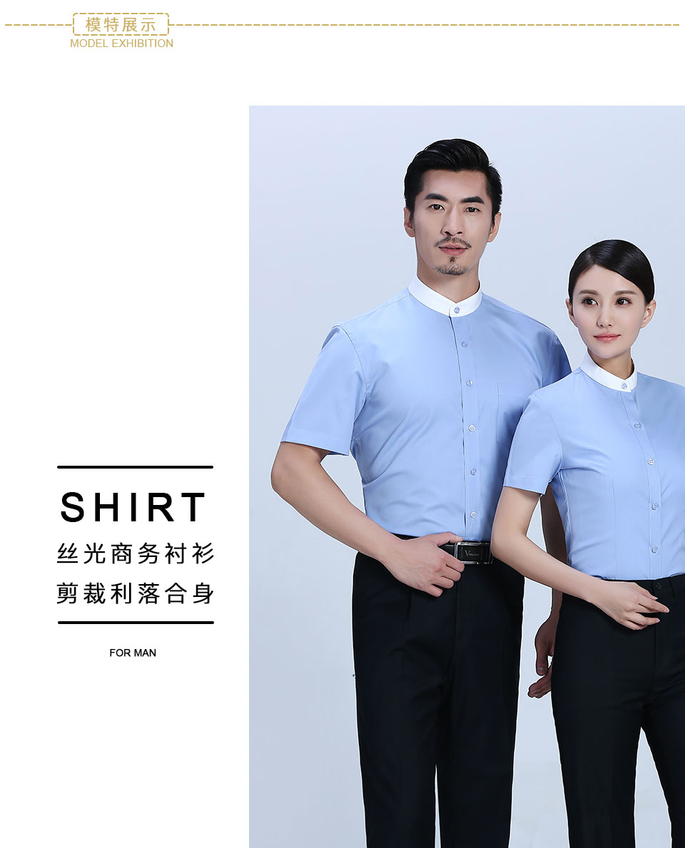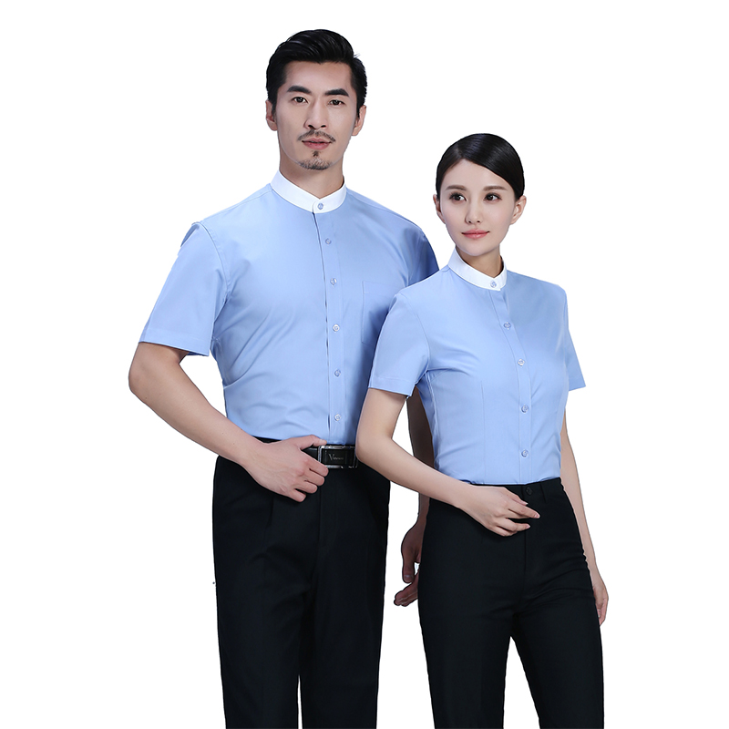 - 標簽:滌棉立領撞色藍色職業襯衫ZL023