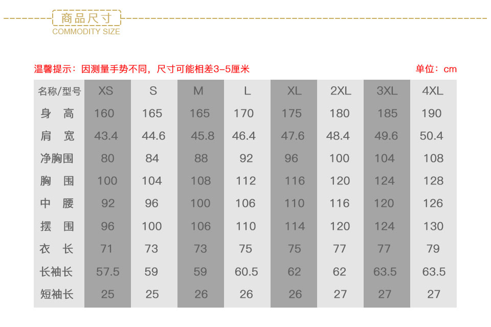 - 本產品共8個尺碼:XS、S、M、L、XL、2XL、3XL、4XL 覆蓋99.5%的人群 >>>查看尺碼表>