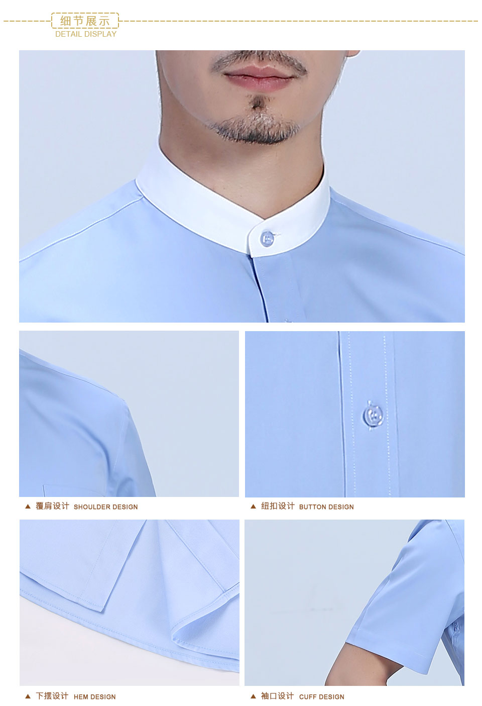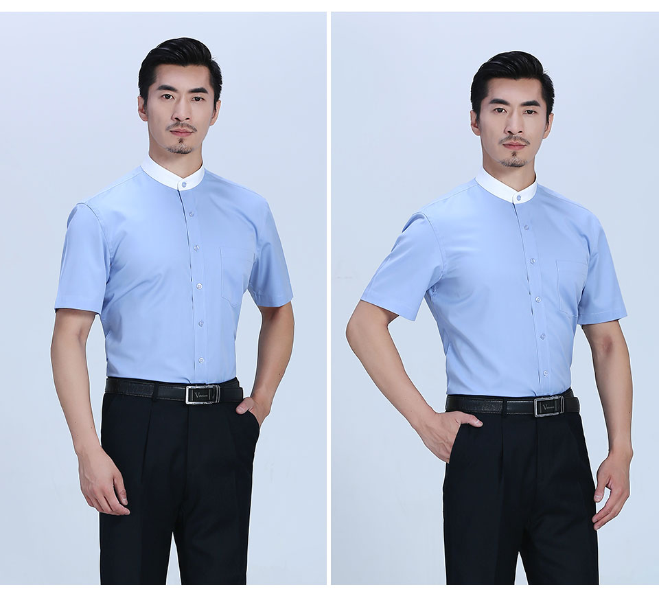 滌棉立領撞色藍色職業襯衫ZL023