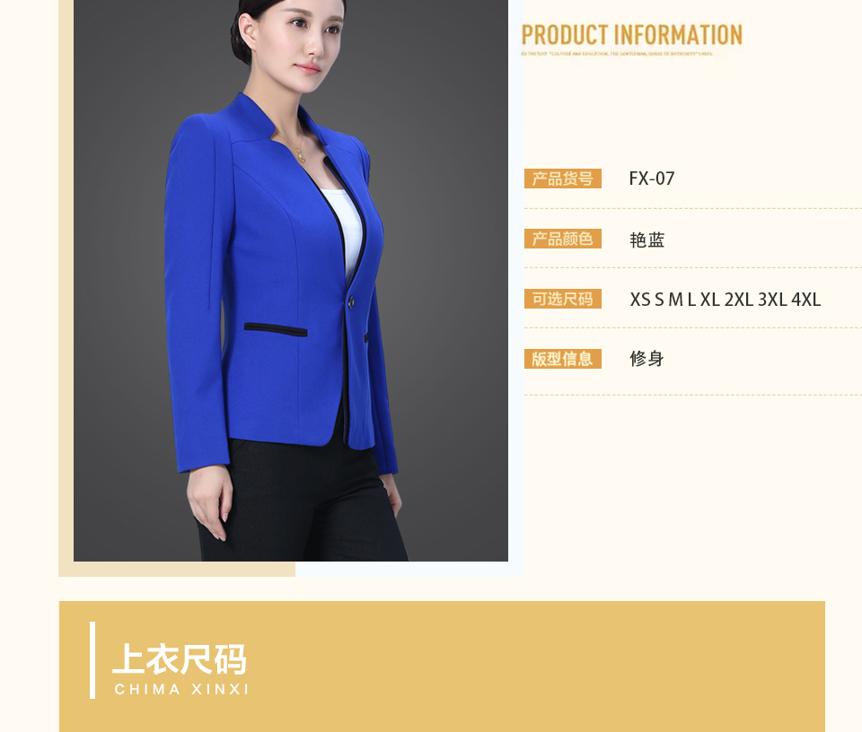 - 標簽:靚藍色修身款時尚職業套裝FX15