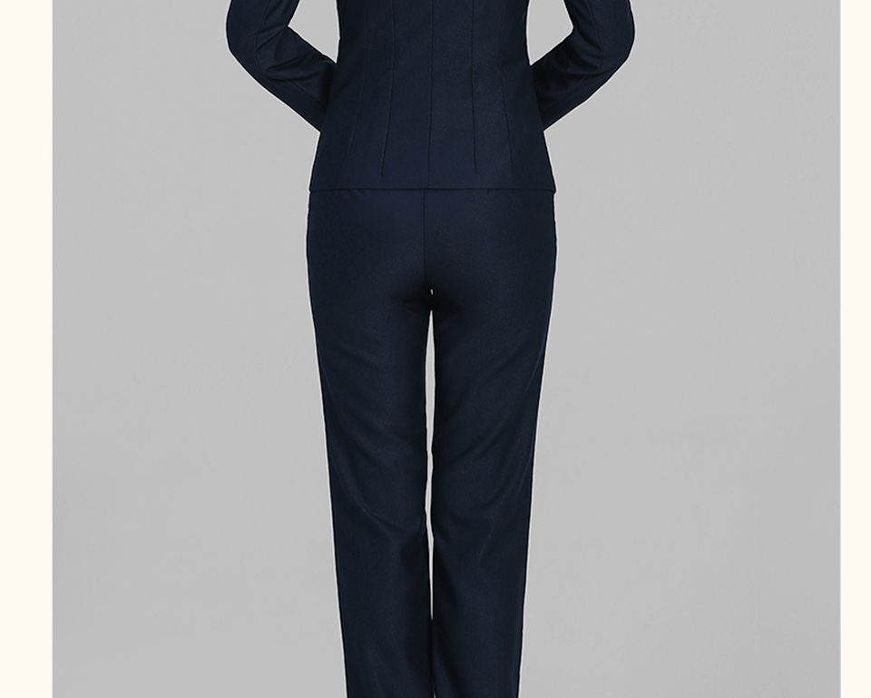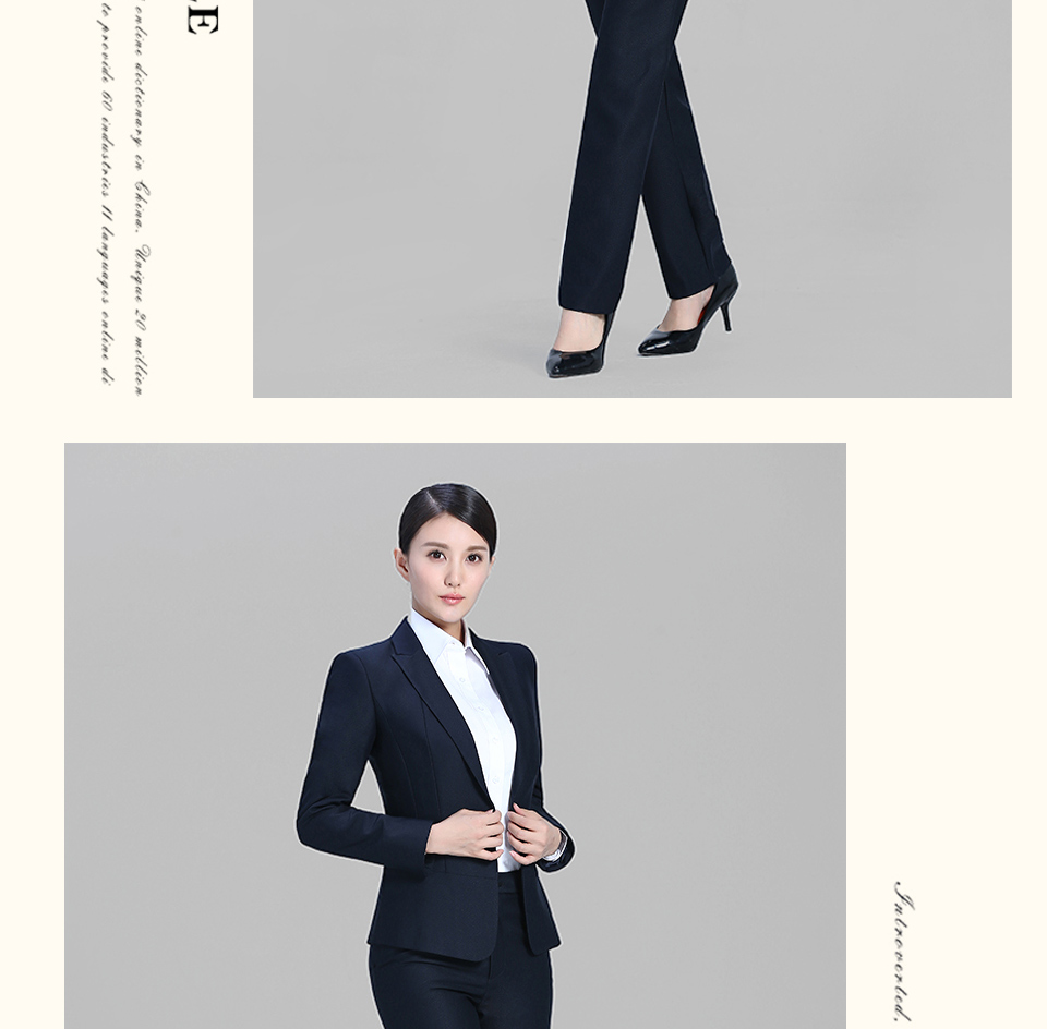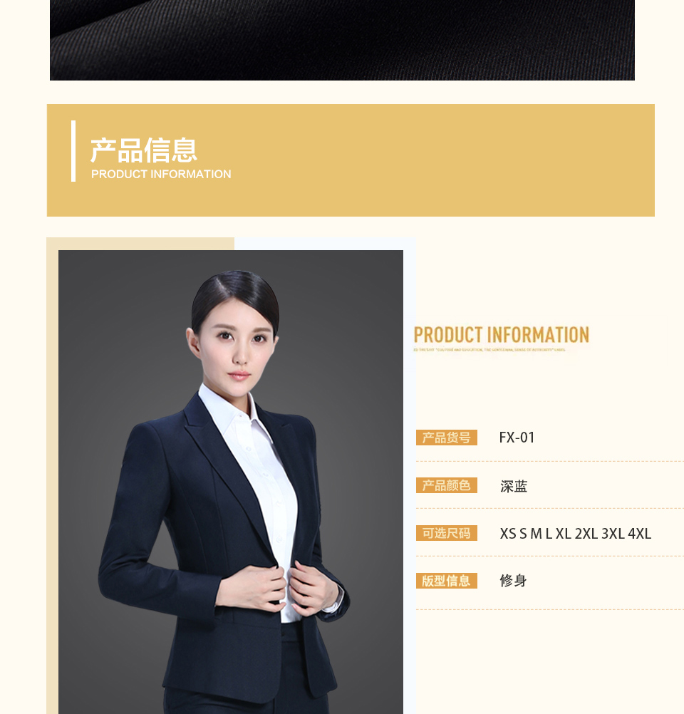 相關(guān)戧駁領(lǐng)藏青色分割線黑色職業(yè)套裝FX09推薦