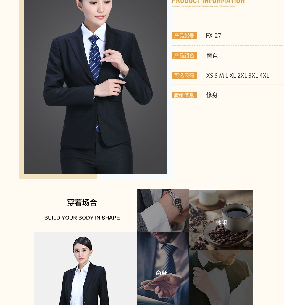 - 標簽:戧駁領修身黑色職業套裝FX30