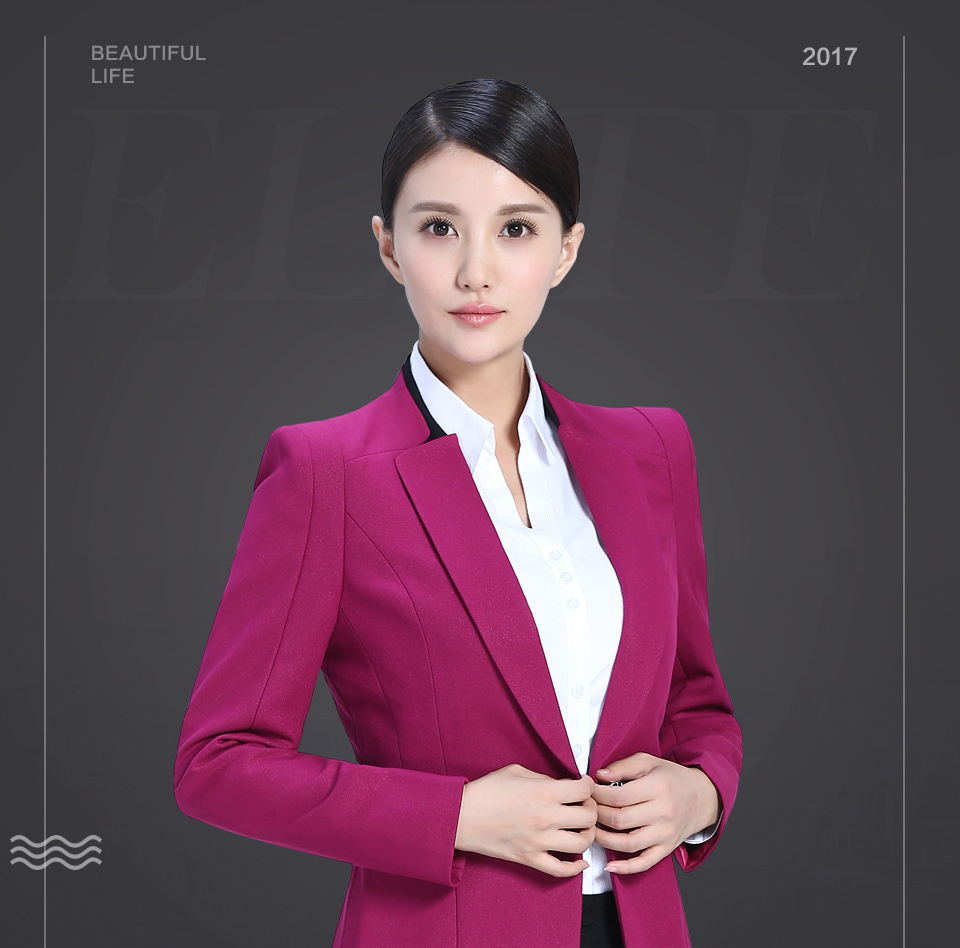 標簽: 改良版翻領玫紅色時尚職業套裝FX11