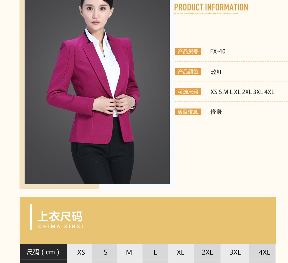- 標簽:改良版翻領玫紅色時尚職業套裝FX11