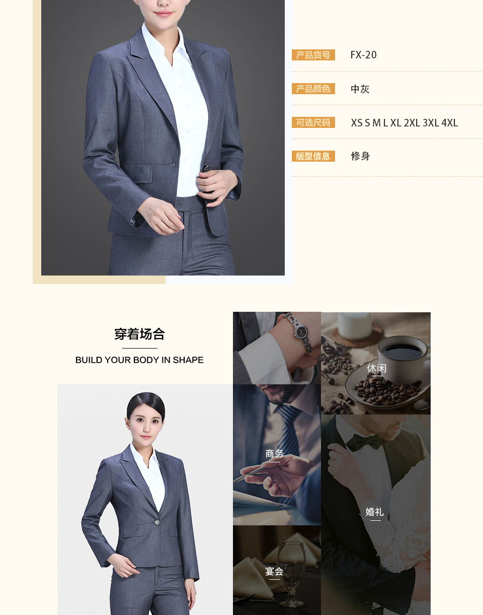 相關(guān)灰色平駁頭西服職業(yè)套裝FX24推薦