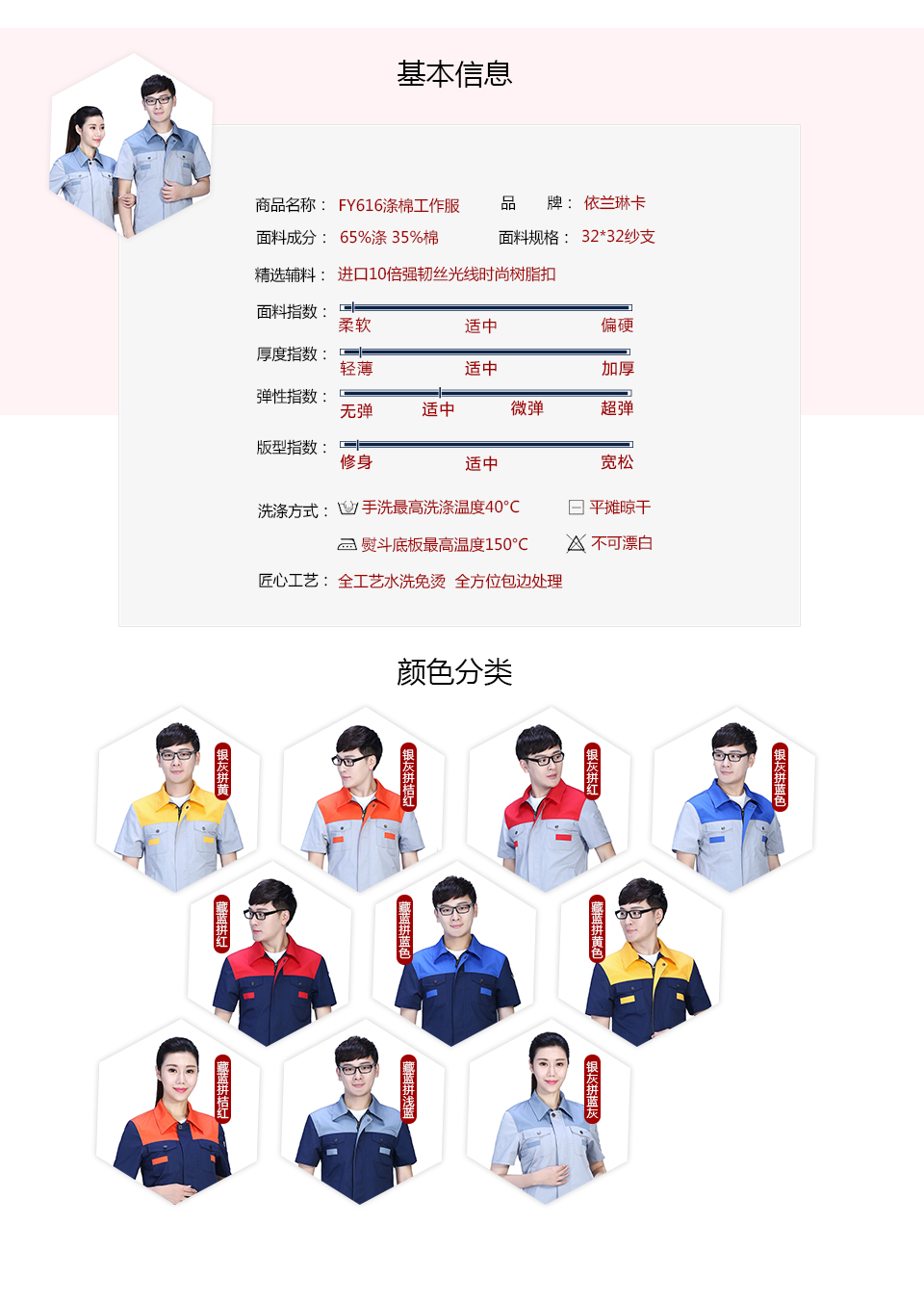 相關時尚撞色拼接夏季滌棉細斜短袖工作服FY616推薦