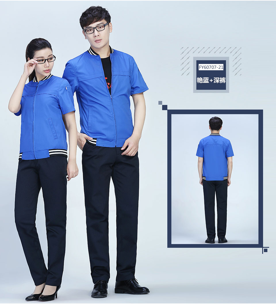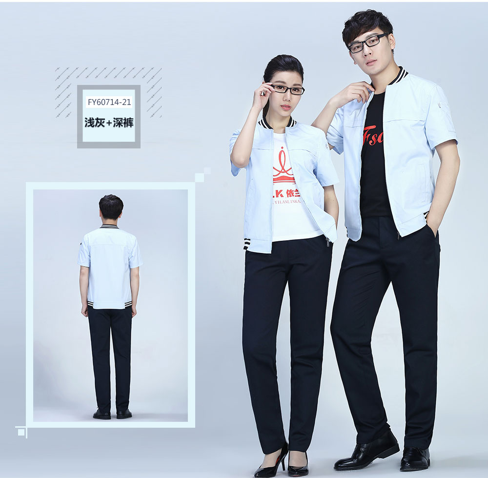 相關(guān)針織條紋領(lǐng)拉鏈休閑時尚款短袖工作服FY07推薦